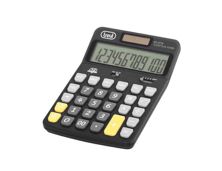 Electronic table calculator Trevi EC 3775, with keyboard and large 12-digit display.