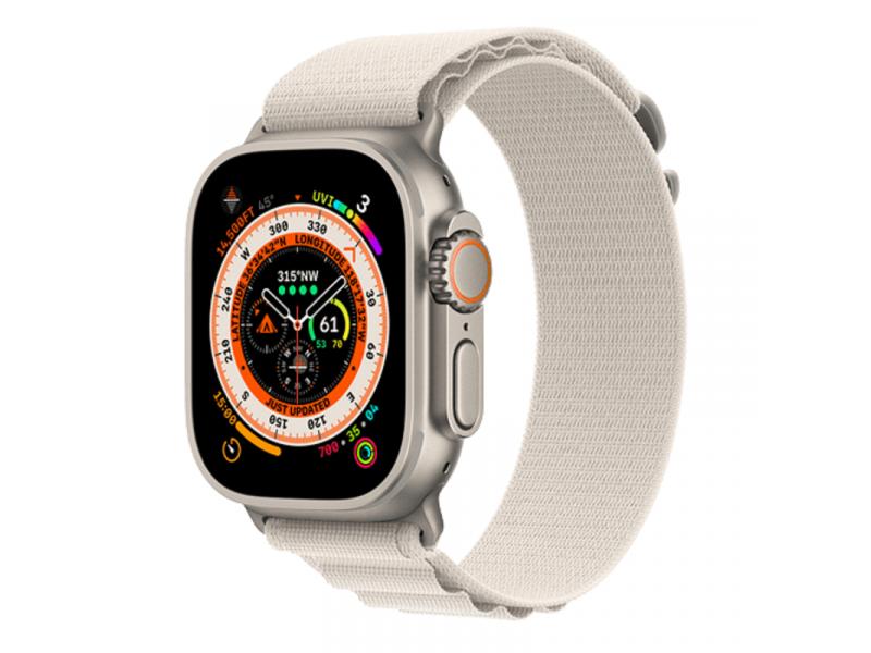 Apple Watch Ultra Cellular, 49mm Titanium Case with Starlight Alpine Loop - Medium