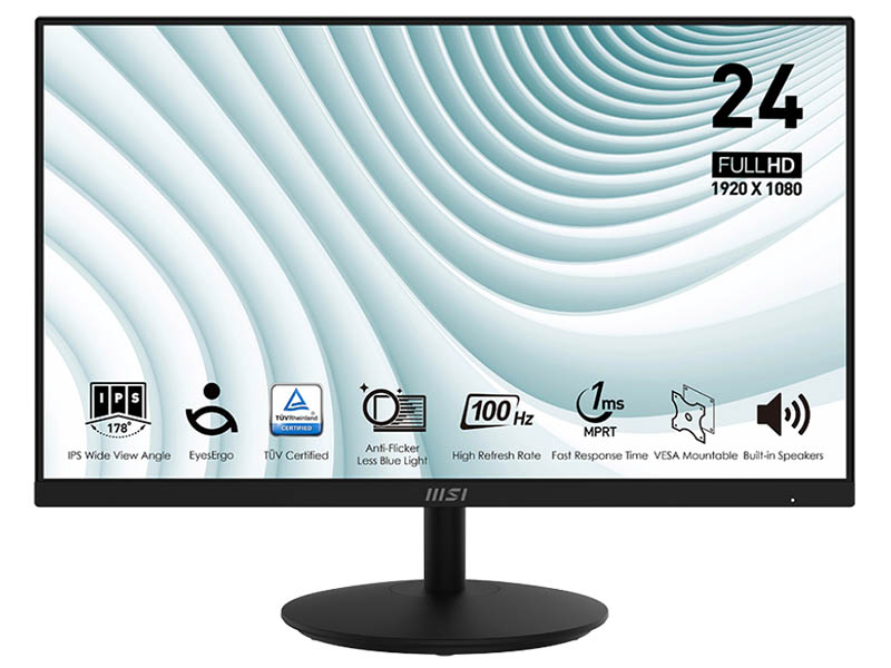 Monitor 24" MSI PRO MP242A IPS/100Hz/ FHD/HDMI/DP/VGA/Speakers/Tilt/Frameless/VESA