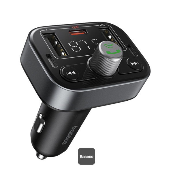 Enhance your car experience with the Baseus FM Transmitter. Utilizing Bluetooth 5.3 technology, this device allows seamless music streaming from your phone to your car's speakers. With a broad FM frequency range (87.5-108 MHz), you can easily find an available frequency for clear audio playback. It supports music from a flash drive and TF card (≤128GB), and features a PD 18W USB-C port for fast charging. The large LED display alternates between showing the frequency band and battery voltage, while hands-free calling ensures safe communication. Equipped with multiple safety protections, including over-current and over-voltage safeguards, this FM transmitter is both versatile and reliable.